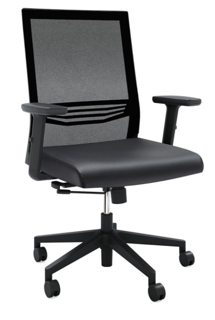 - Fabric seat with a mesh back that allows air to circulate while you work
